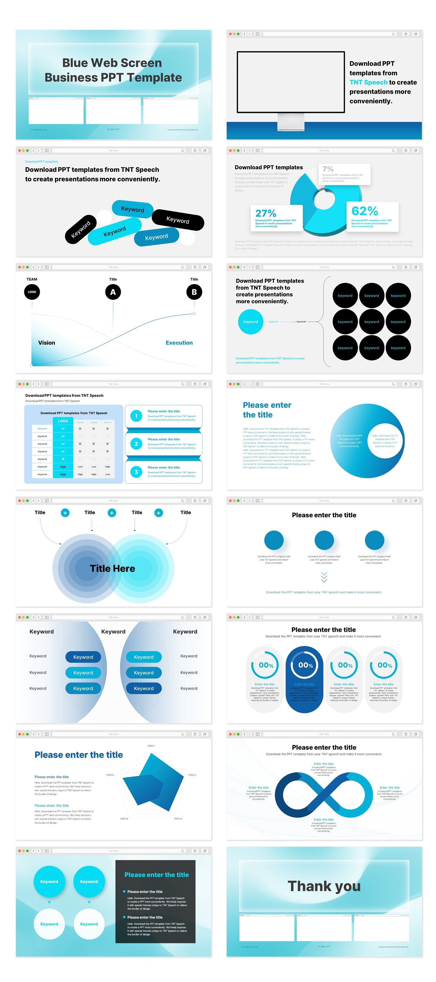 블루 웹 화면 비즈니스 PPT 템플릿 (B209)